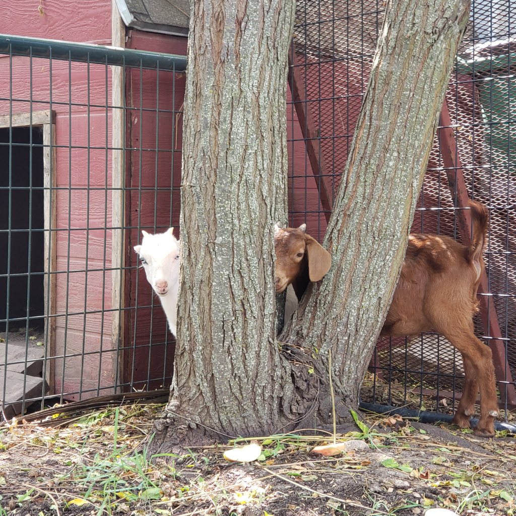 As the next few goats came through, my eyes landed on a little brown one with floppy ears and the kindest expression. I knew she (well — he!) would make the perfect companion for our white goat. I joined the bidding once again and soon had my second goat in tow.